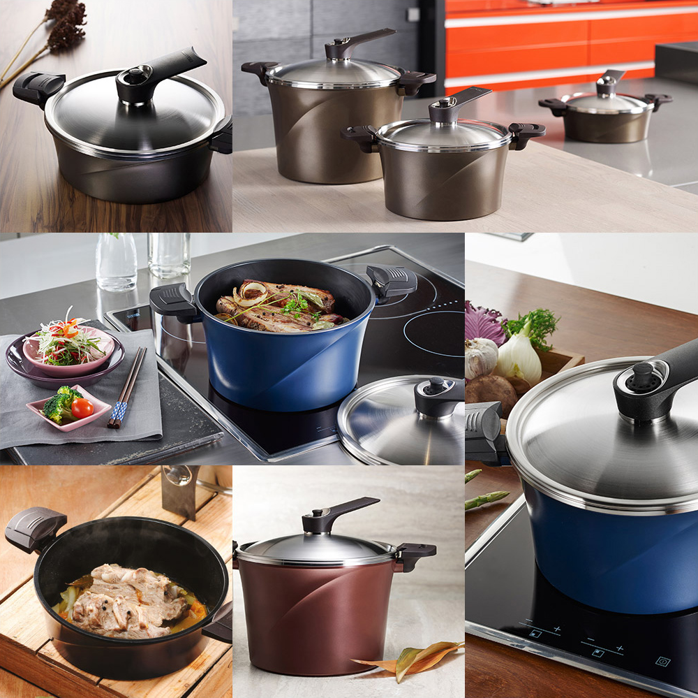 Potrójny układ niskiego ciśnienia w próżniowym garnku Happycall IH powstał z najlepszym rozwiązaniom technologicznm firmy Happycall. Na tą funkcję składa się: kontrola ciśnienia za pomocą regulacji ilości pary, trwałe wykonanie z użyciem mieszanek krzemu i specjalne uchwyty blokujące. Technologia Happycall pozwala zachować naturalny smak i składniki odżywcze będące w potrawach, dzięki utrzymywaniu ich w próżni.