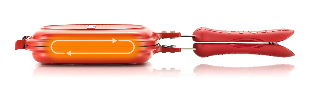 Rewolucyjny zatrzask umożliwia proste i wygodne otwieranie i zamykanie patelni. Duża siła magnesu zapewnia pewne zamknięcie oraz prowadzi do zwiększenia ciśnienia wewnątrz patelni.